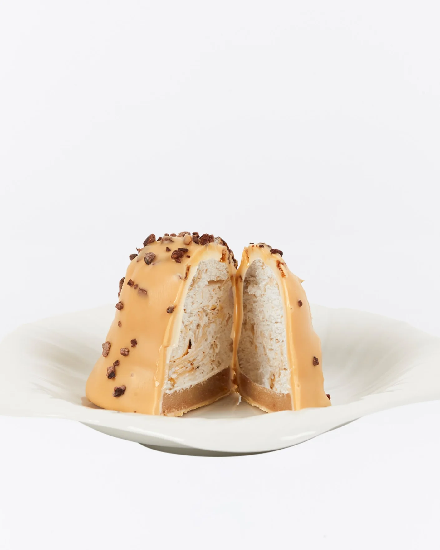Marcipan, italiensk karamelmarengs, knust karamel, hvid chokolade, Amber Classic-chokolade og grué.